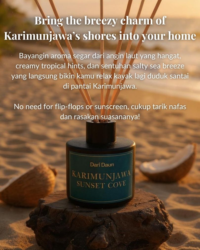 Bayangin aroma segar dari angin laut yang hangat, creamy tropical hints, dan sentuhan salty sea breeze yang langsung bikin kamu relax kayak lagi duduk santai di pantai Karimunjawa. No need for flip-flops or sunscreen, cukup tarik nafas dan rasakan suasananya!